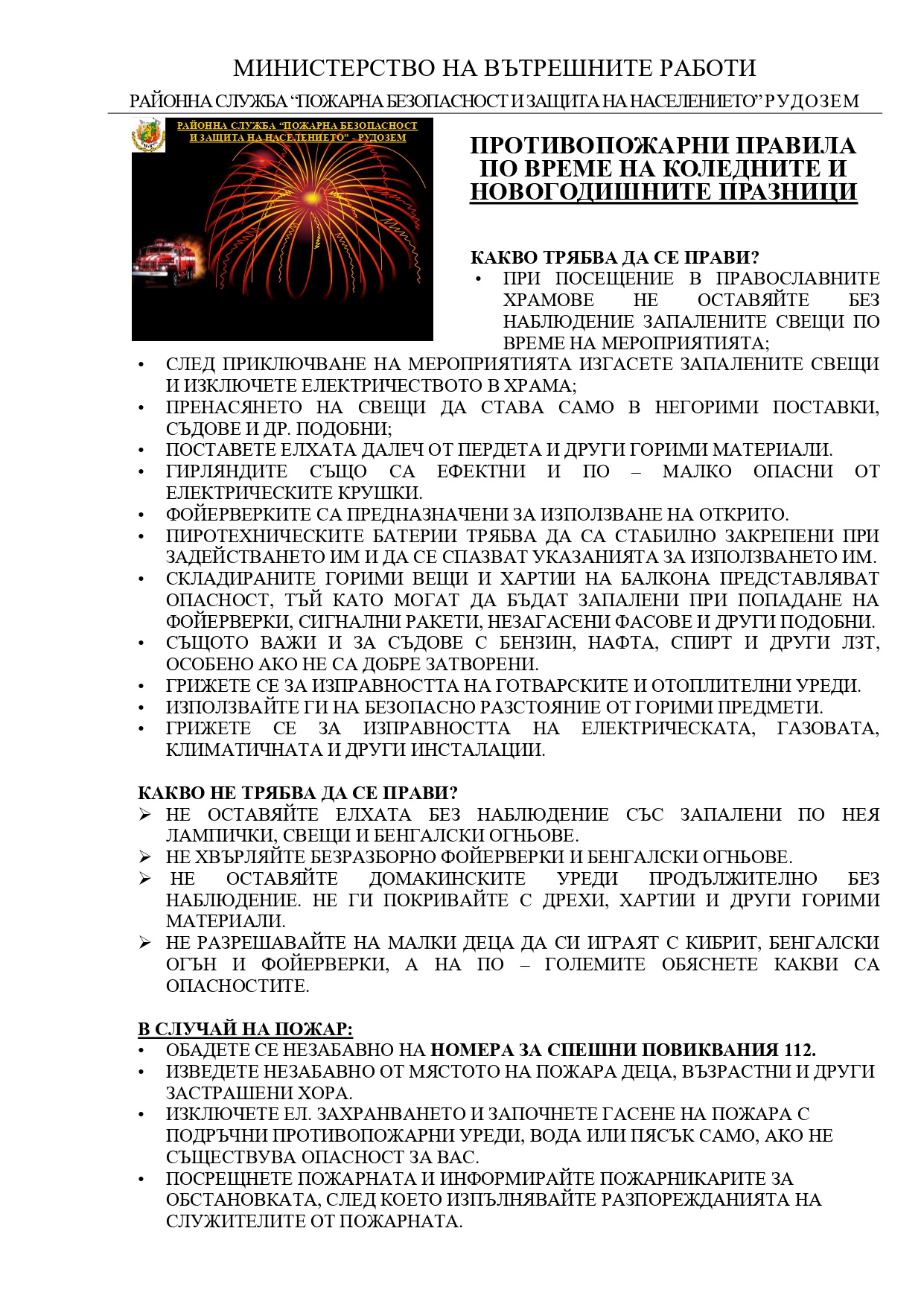 Противопожарна безопасност по време на коледните и новогодишните празници