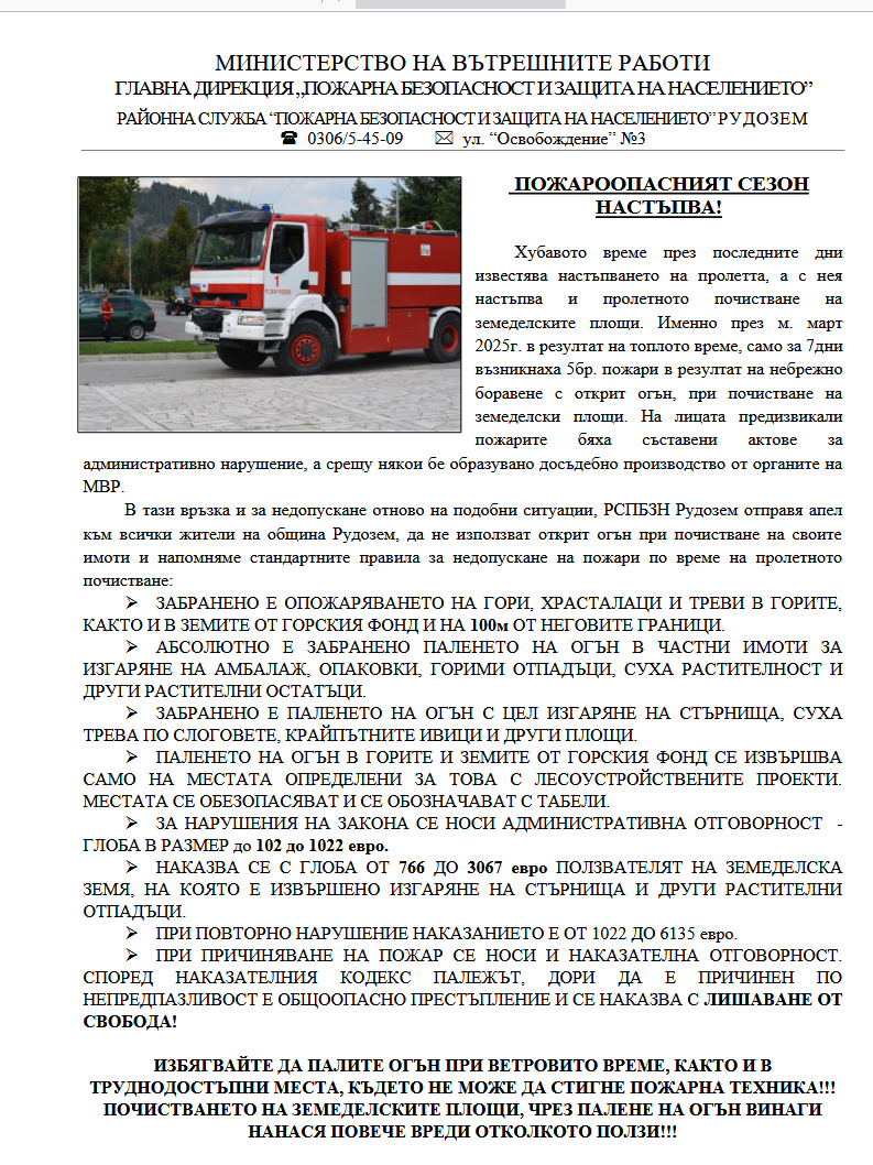 ПОЖАРООПАСЕН СЕЗОН