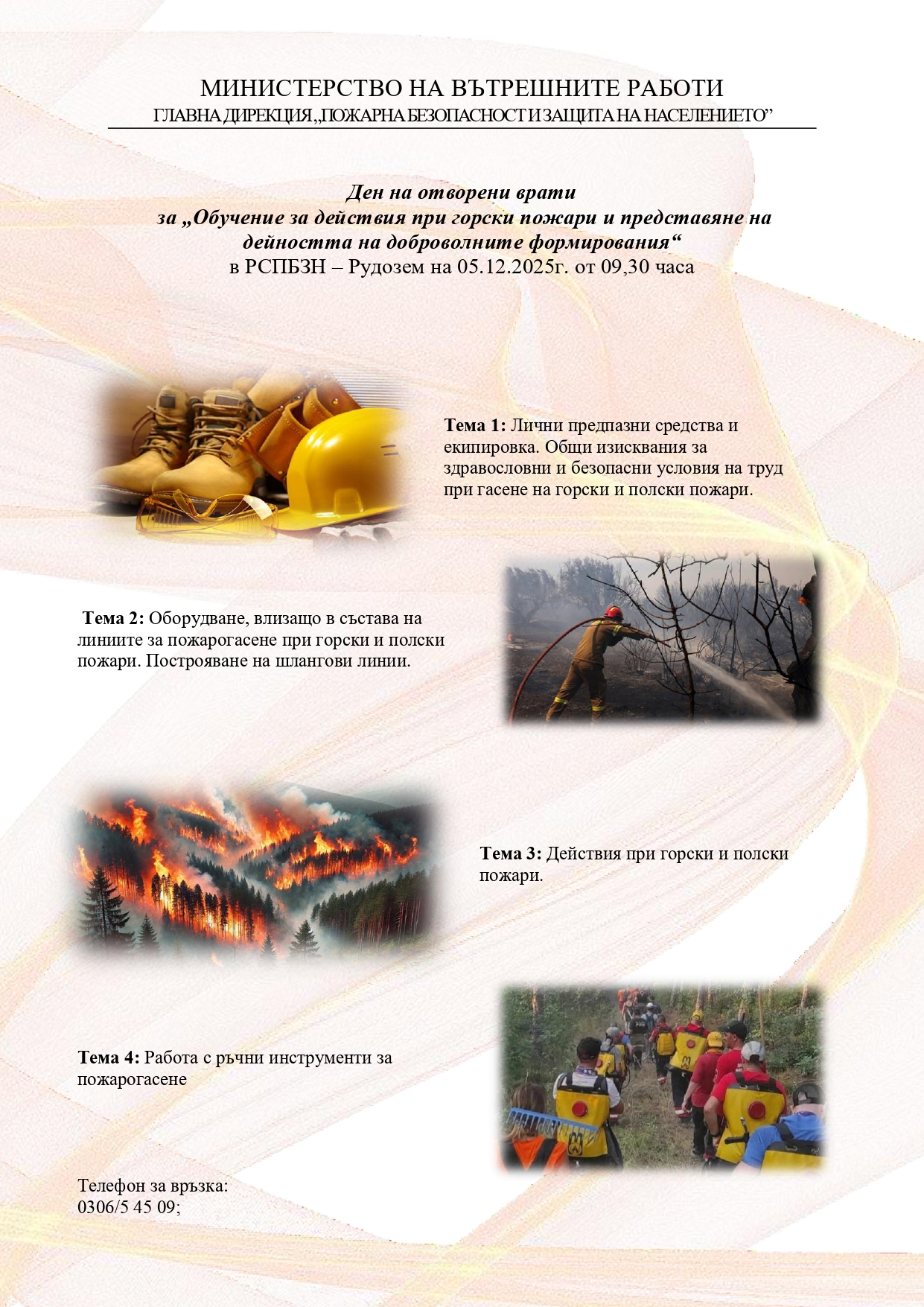 Ден на отворени врати: Обучение за действия при горски пожари и представяне на доброволческите формирования
