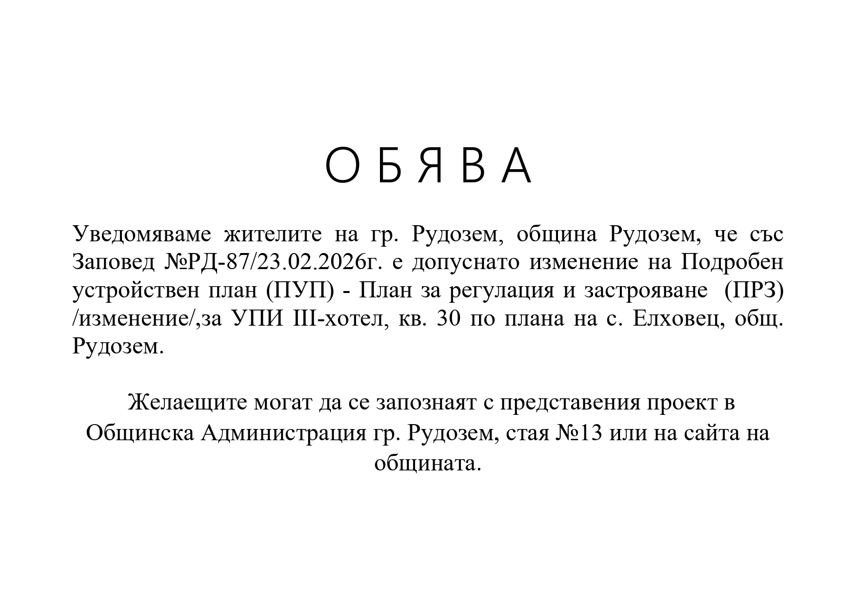 - Документи за публично обсъждане